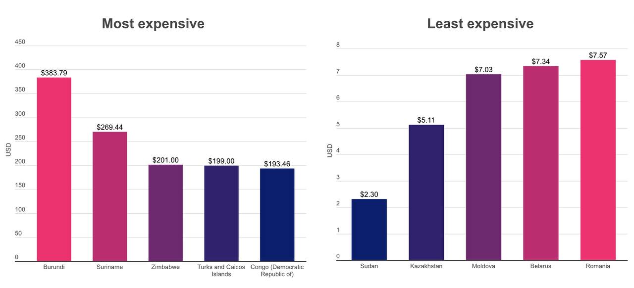 Речь о свежем (март 2023 года) рейтинге 219 стран по стоимости широкополосного доступа во всемирную сеть Интернет — и Казахстан в этом рейтинге второй с конца — сразу после Судана, страны с самым дешевым интернетом в мире.