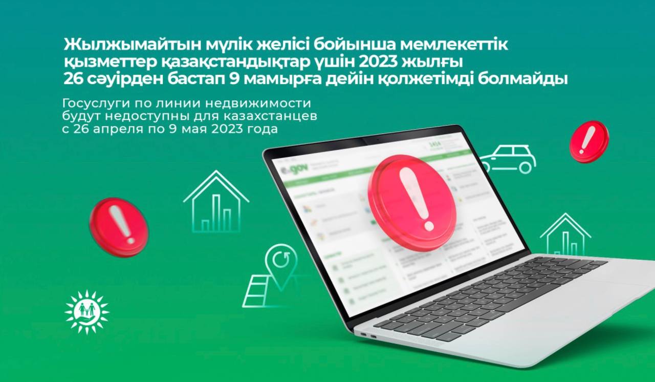 С 26 апреля по 9 мая 2023 года все ЦОНы Казахстана не будут оказывать все виды услуг в сфере государственной регистрации прав (обременений) на недвижимое имущество, регистрации движимого имущества, не подлежащего обязательной регистрации и технического обследования объектов недвижимости.
