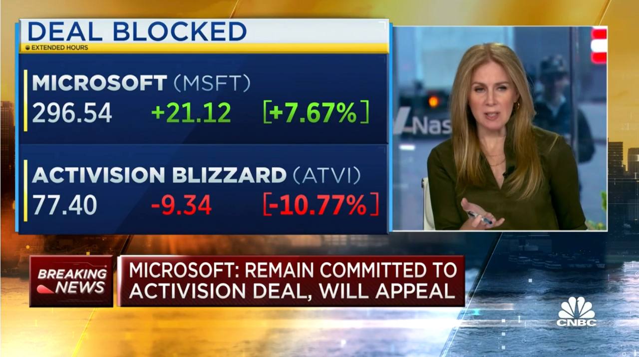 Акции владельца Call of Duty и Candy Crush Saga упали на этом решении, а Microsoft — выросли, в том числе благодаря хорошему квартальному отчёту.