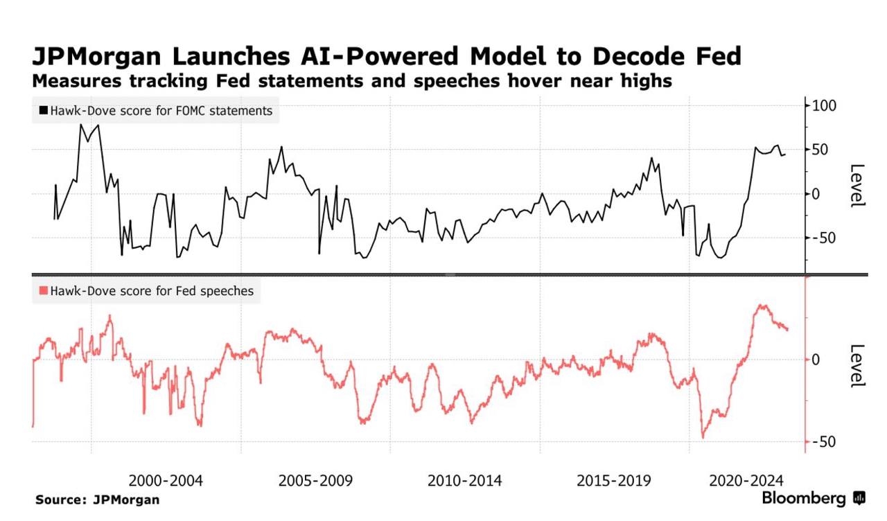 Экономисты JPMorgan Chase&Co. не стали останавливаться только на ФРС США и скормили своей модели ИИ все тексты от Европейского центрального банка и Банка Англии. В ближайшие месяцы они обещают проделать это еще с 30 центральными банками других стран мира.