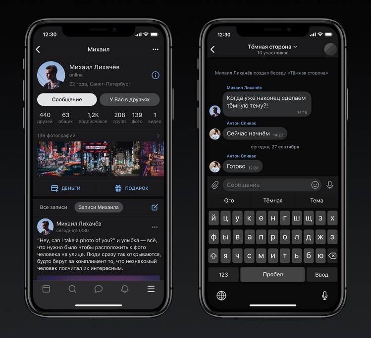 «ВКонтакте» выпустила темную тему для мобильного приложения. Новинка уже появилась в версии для iOS, а в будущем станет доступна для Android👏🏽