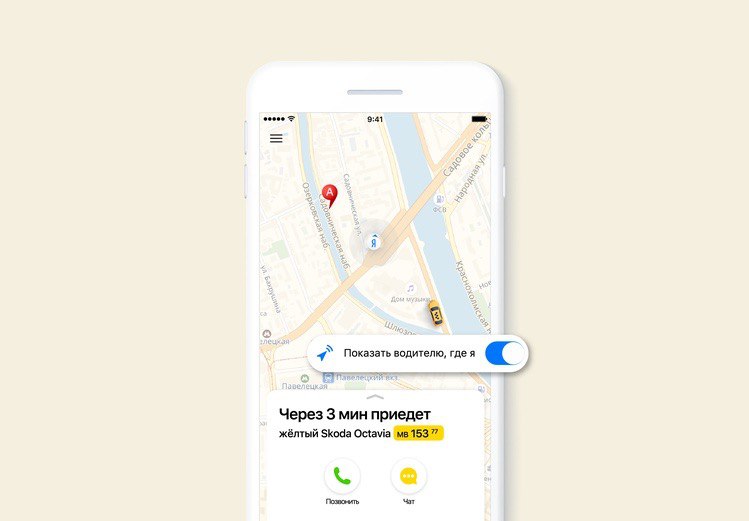 Для того чтобы водитель увидел пользователя на карте, нужно разрешить сервису доступ к геолокации смартфона. Сделать это можно с помощью ползунка — он появится на экране после назначения машины. После этого таксист сможет узнать точное местоположение пассажира.