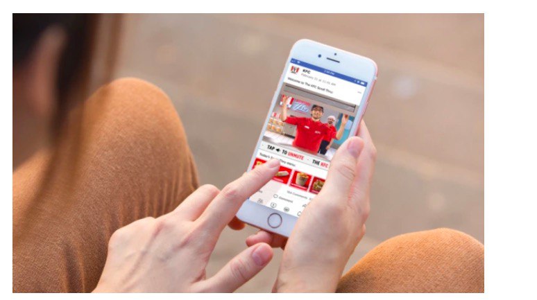 Компания разместила витрину KFC Scroll Thru со своими блюдами в рекламном блоке в лентах соцсетей. Когда пользователь увидит витрину, на экране появится виртуальный сотрудник сети с предложением оформить заказ.