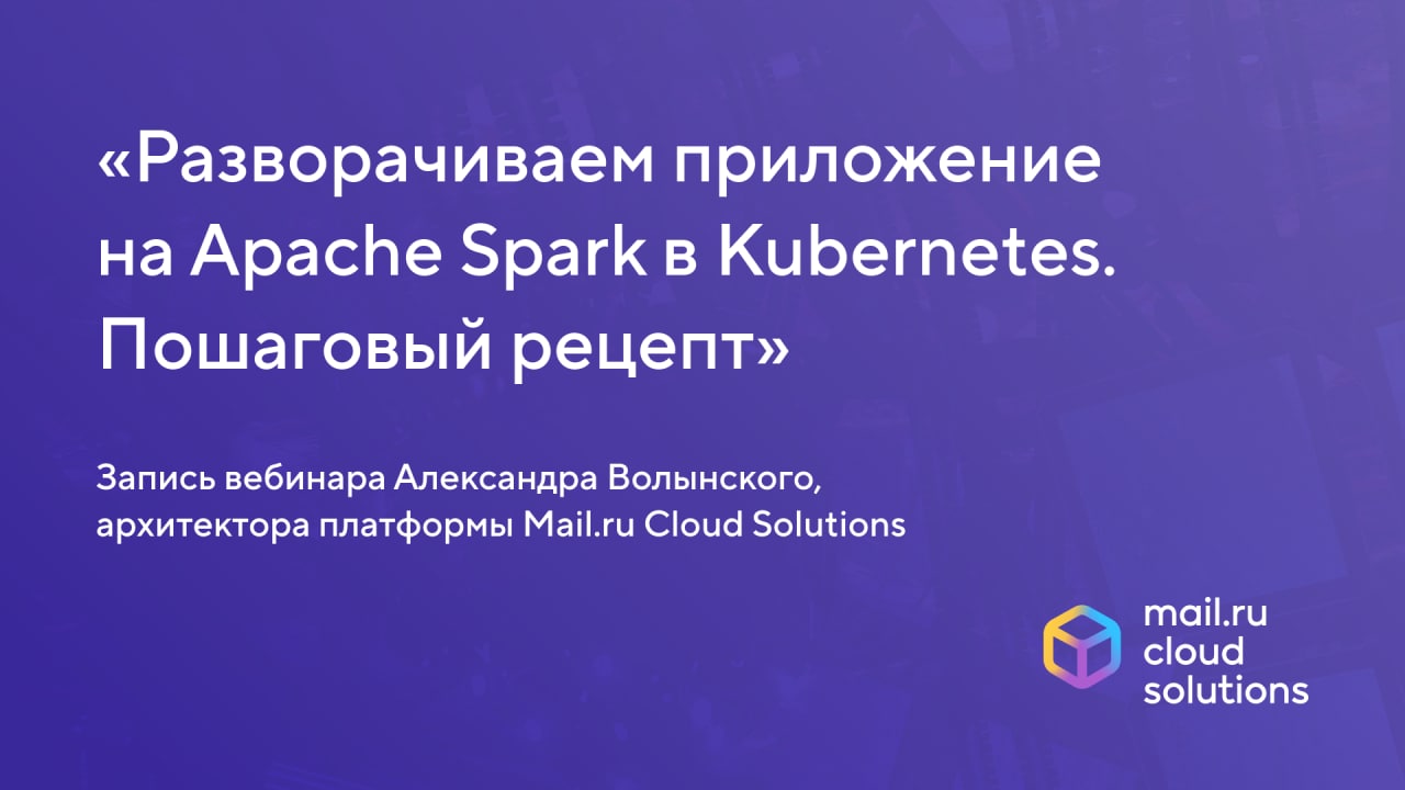 Запись вебинара «Разворачиваем приложение на Apache Spark в Kubernetes. Пошаговый рецепт»