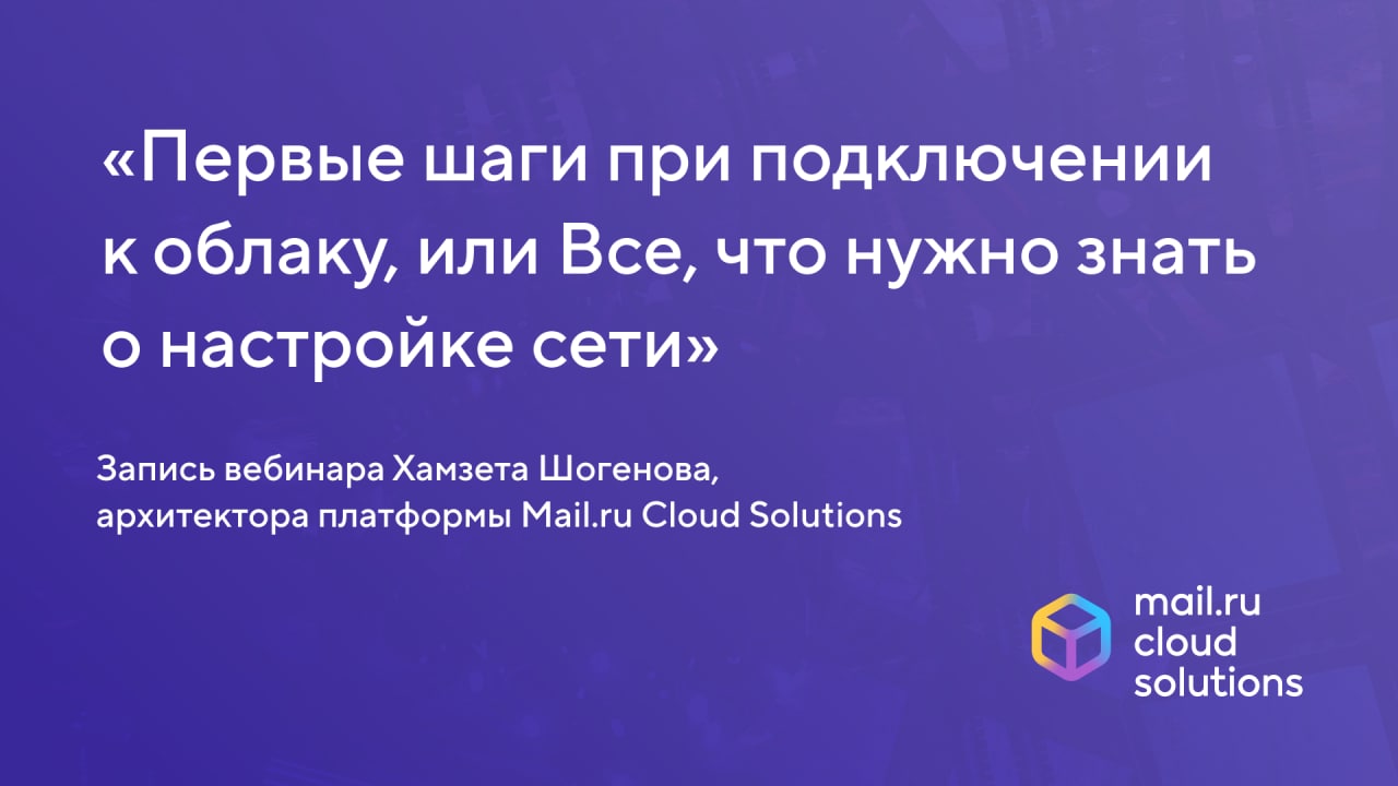 Как это сделать — рассказал Хамзет Шогенов, архитектор платформы Mail.ru Cloud Solutions. Вы узнаете, как настроить виртуальную сеть, правильно распределить нагрузку, обеспечить удаленный доступ, безопасность и отказоустойчивость на уровне инфраструктуры. Посмотрите запись вебинара.