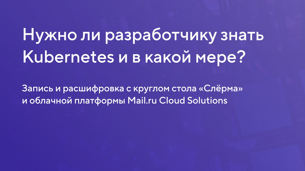 Нужно ли разработчику знать Kubernetes и в какой мере? Круглый стол «Слёрма» и MCS