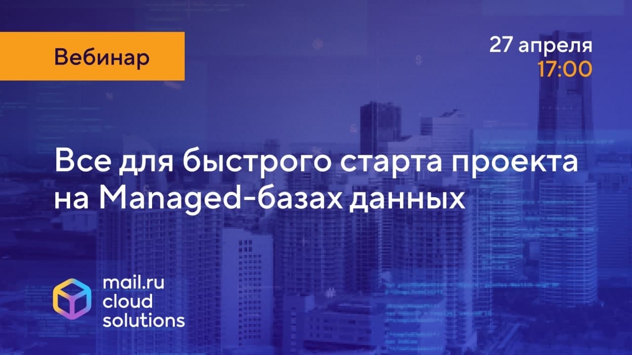 Бесплатный вебинар «Все для быстрого старта проекта на Managed-базах данных» от Mail․ru Cloud Solutions