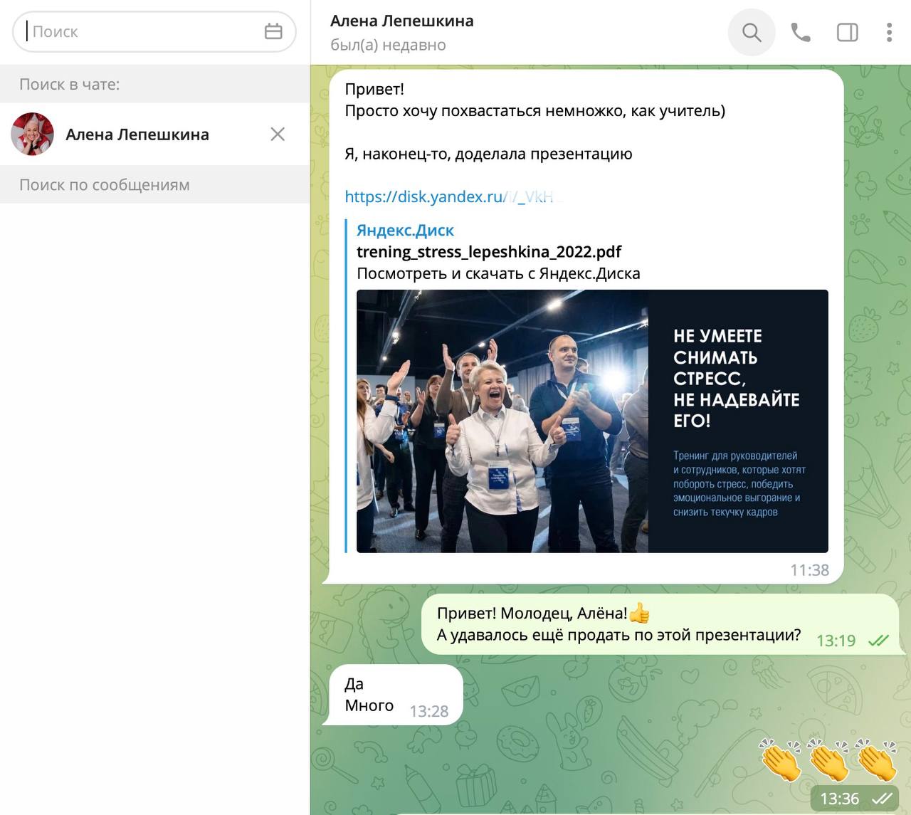 На скрине диалог с Алёной, которая пришла на практикум с запросом: