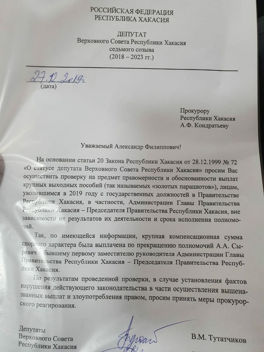💼💰🚨В ХАКАСИИ ДЕПУТАТЫ ОБРАТИЛИСЬ В ПРОКУРАТУРУ ИЗ-ЗА ВЫПЛАТЫ ЭКС-ЧИНОВНИКАМ «ЗОЛОТЫХ ПАРАШЮТОВ»