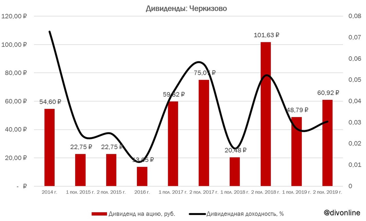 Совет директоров Черкизово рекомендовал дивиденды за II пол. 2019 г. в размере 60,92 руб. Таким образом, общие выплаты по итогам 2019 г. могут составить 2,68 млрд руб. Текущая дивидендная доходность составляет 3%. Закрытие реестра состоится 7 апреля 2020 г. #Черкизово #GCHE