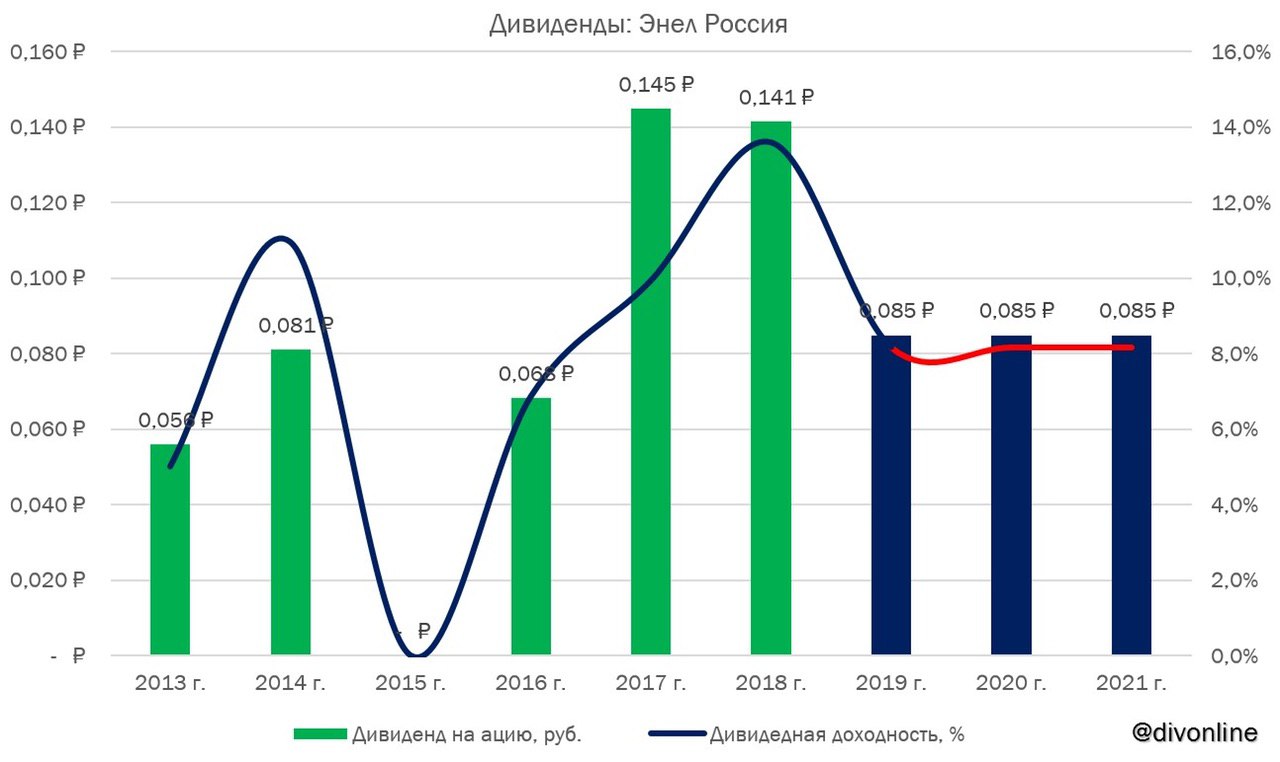 Дивидендная политика компании предполагает выплату 65% чистой прибыли по МСФО. Энел Россия планирует вернуться в будущем к политике выплат исходя из процента чистой прибыли, сказал журналистам глава компании, но уточнил сроки и коэффициент выплат. Фиксация дивиденда должна защитить акционеров от волатильности прибыли, считает менеджмент компании. #ЭнелРоссия #ENRU