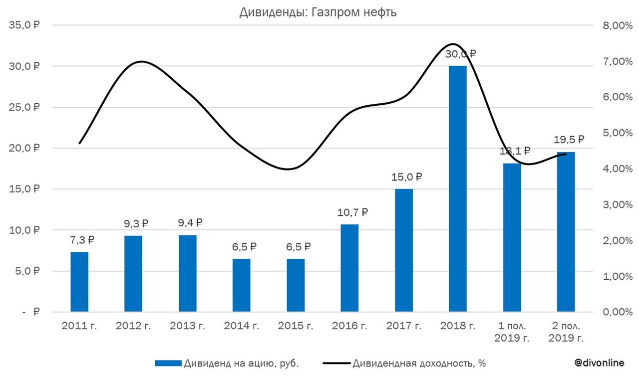 Газпром нефть подтвердил переход на выплату дивидендов в 50% чистой прибыли по МСФО. Компания направит по итогам 2019 г. 50% чистой прибыли по МСФО, таким образом текущая доходность по нашим оценкам составляет 5,24% за II пол. 2019 г. #Газпромнефть #SIBN