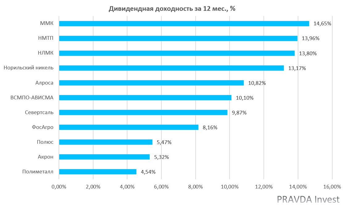 💰На фоне девальвации российского рубля с начала года более чем на 30%, мы подготовили для вас подборку компаний, которые сильнее всех выиграют от слабого рубля. При этом, мы исключи нефтегазовые компании, так как ослабление рубля растеряется на фоне обвала цен на нефть. К тому же, мы расположили компании по дивидендной доходности за последние 12 месяцев.
