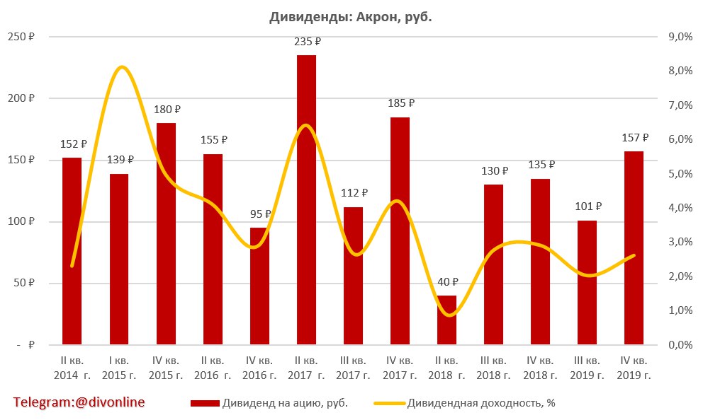Хотим отметить, что при текущем курсе доллара, Акрон чувствует себя очень хорошо, можно ожидать роста дивидендов в 2020 г. #Акрон #AKRN