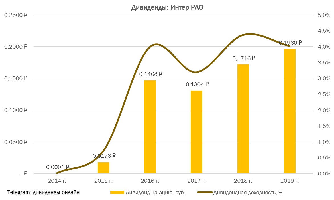 Акционеры ИнтерРАО утвердили дивиденды за 2019 г. в размере 0,196 руб. на акцию. Текущая дивидендная доходность составляет 4%. Дата закрытия реестра для получения дивидендов назначена 1 июня 2020 г. #IRAO #ИнтерРАО