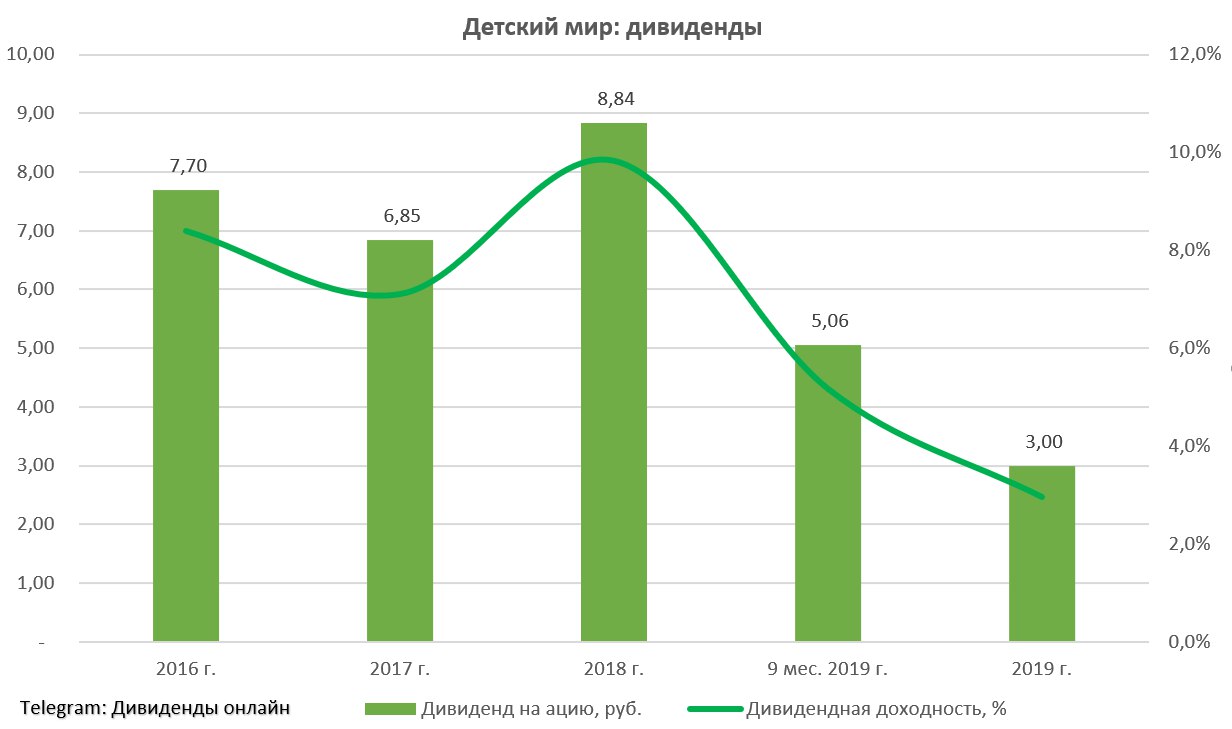 Акционеры Детского мира утвердили финальные дивиденды за 2019 г. в размере 3 руб. на акцию. Общая сумма выплат может составить 2,2 млрд руб. – это 90% чистой прибыли по МСФО или 55% чистой прибыли по РСБУ за IV кв. 2019 г. Текущая дивидендная доходность составляет 3%. Дата закрытия реестра для получения дивидендов назначена на 11 июля 2020 г. #DSKY #ДетскийМир