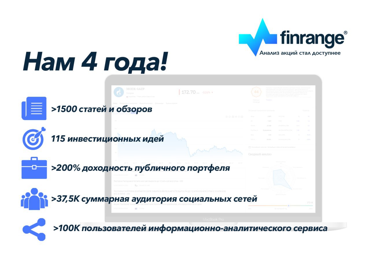 Сегодня хотим поздравить С Днём Рождения коллег! Они за 4 года выросли с блога в социальных сетях до информационно - аналитического сервиса по анализу акций Finrange.com
