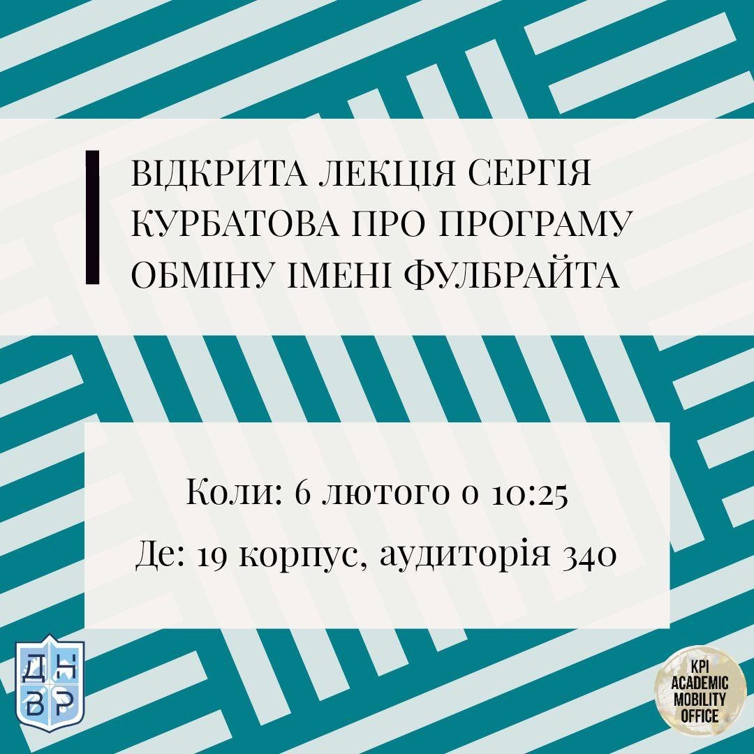 🗓 Запрошуємо на відкриту лекцію Сергія Курбатова про програму обміну імені Фулбрайта