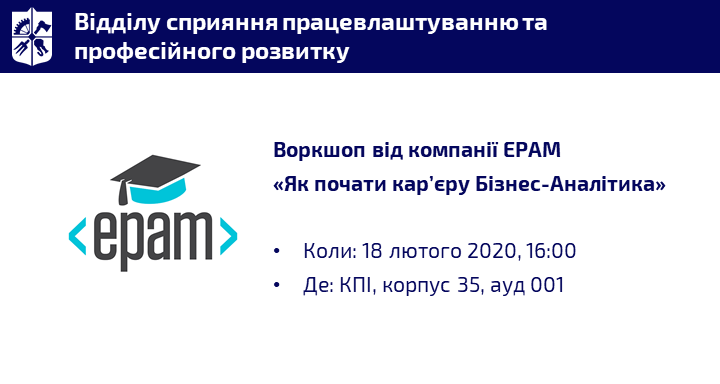 🗓 Запрошуємо вас відвідати воркшоп від компанії EPAM "Як почати кар’єру Бізнес-Аналітика"
