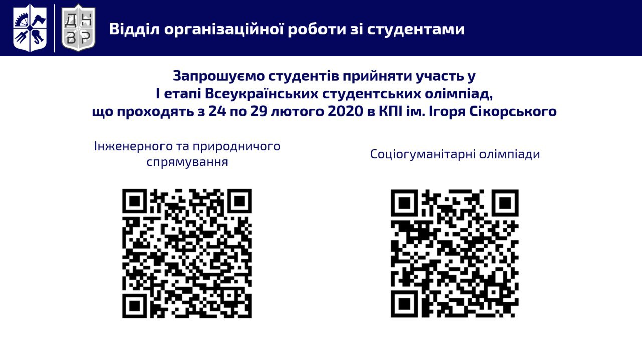 📌 Запрошуємо студентів взяти участь у І етапі Всеукраїнських студентських олімпіад, що проходять з 24 по 29 лютого 2020 року в КПІ ім. Ігоря Сікорського