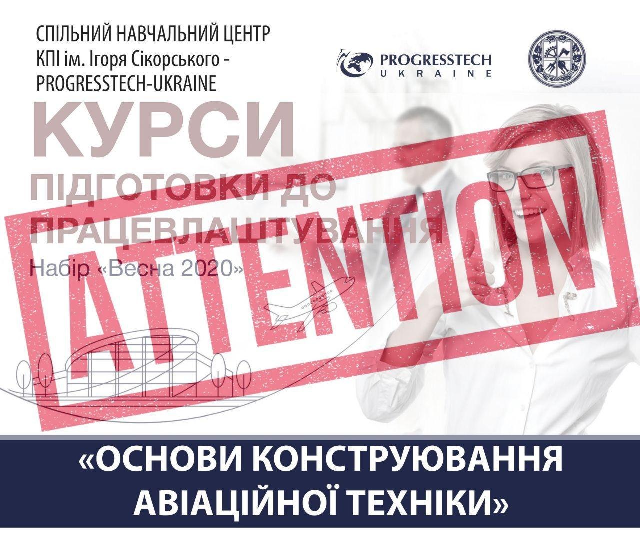 🗓 Прогрестех-Україна спільно з КПІ ім. Ігоря Сікорського запрошує на вечірні курси підготовки до працевлаштування «Основи конструювання авіаційної техніки» Весна – 2020