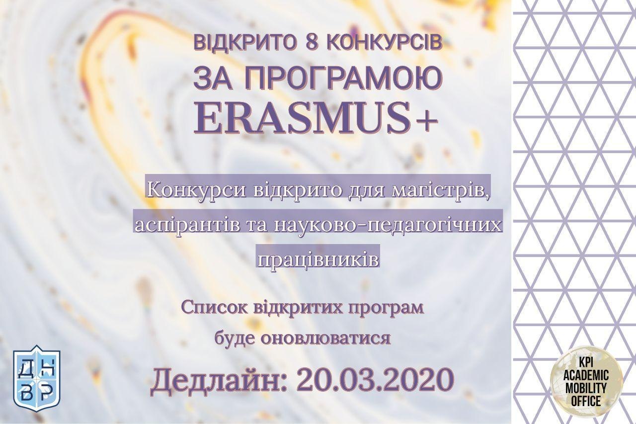 🗓 Відкрито 8 конкурсів за програмою Erasmus+