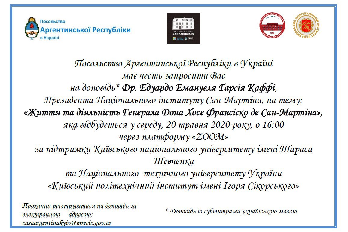 📋 Для реєстрації на доповідь пишіть на casaargentinakyiv@mrecic.gov.ar, де вказати у листі Ваше прізвище та назву ЗВО