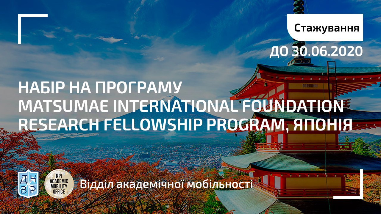 🗓 Набір на програму Matsumae International Foundation Research Fellowship Program, Японія