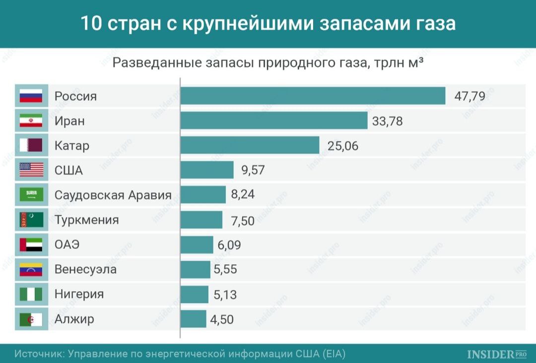 Перед нами рейтинг стран с наибольшими запасами природного газа.