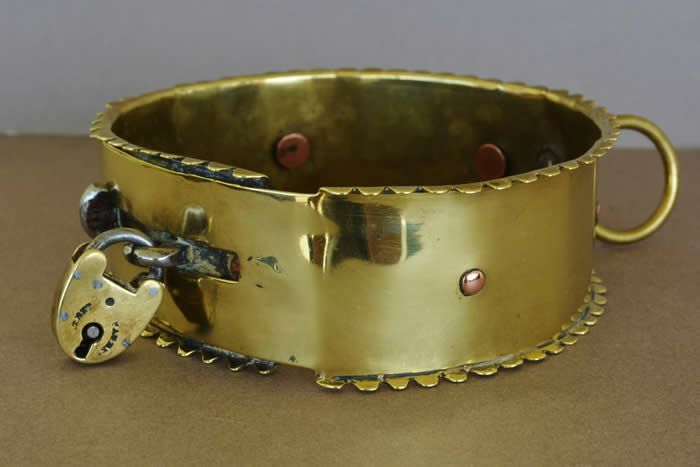 Также популярным в это время был металлический ошейник из загнутыми краями для удобства собаки с замочком, свисающим спереди. Ключ от такого замка был только у хозяина. Сняв с помощью ключа такой ошейник, человек доказывал, что является владельцем собаки.