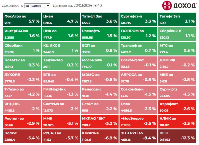 Итоги среди компаний, входящих в индекс Мосбиржи: