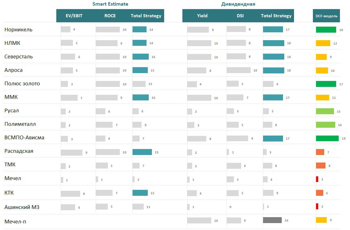 🔹С другой стороны, низкие мультипликаторы отражают сомнения участников рынка в долгосрочном росте цен на металлы. Это находит отражение в относительно низких потенциалах по нашим моделям дисконтирования у большинства компаний.