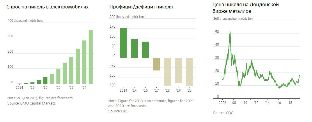 The Wall Street Journal напоминает, что дефицит на рынке никеля должен сохранится в ближайшие несколько лет из-за роста спроса со стороны производителей электромобилей. Это создает хороший потенциал для дальнейшего восстановления цен на металл.