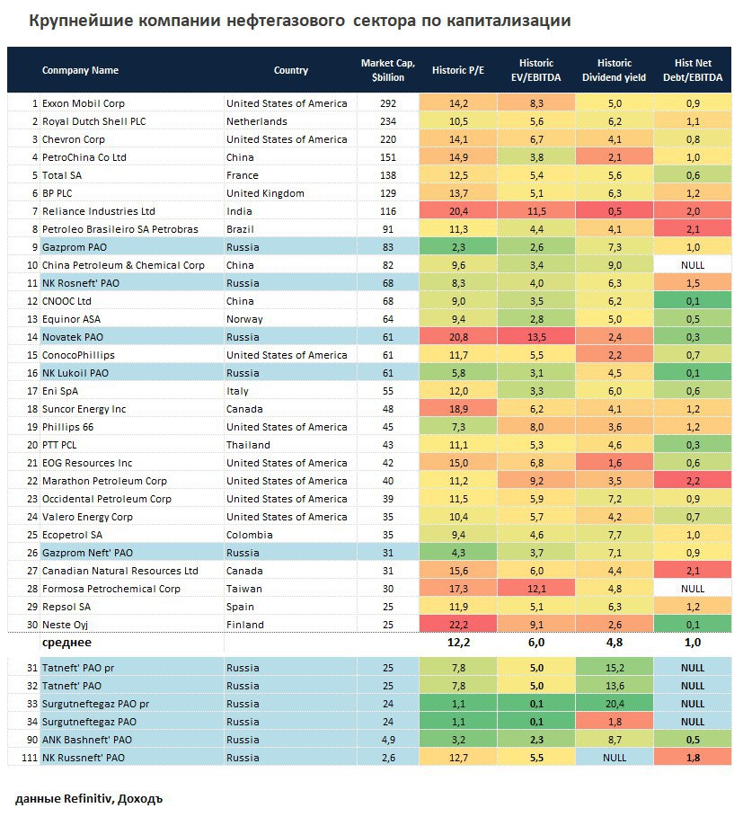 🛢 Российские компании нефтегазового сектора в сравнении с мировыми публичными представителями отрасли