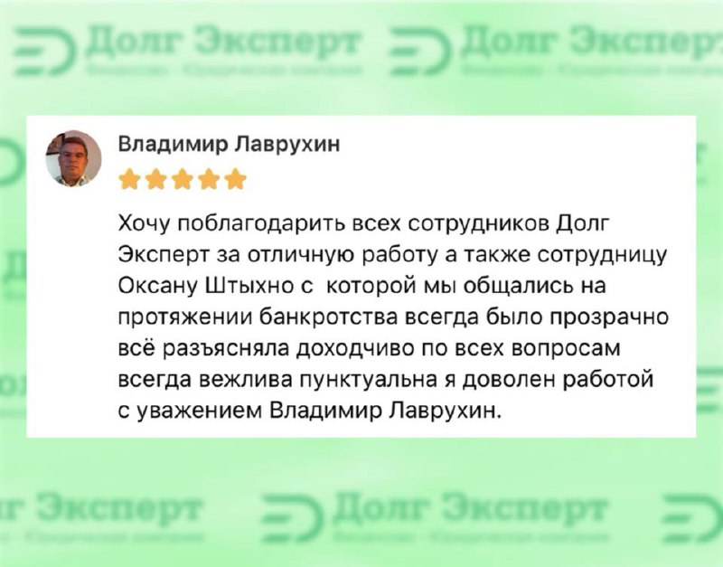 Сотрудники Долг Эксперт помогут законно избавиться от долговой ловушки, даже если кажется, что выхода нет. Обращайтесь, чтобы начать жить спокойно уже сегодня! 💪