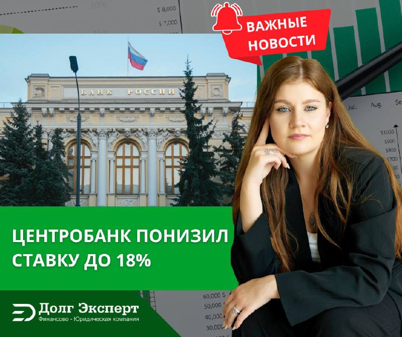 Новость дня: ключевая ставка опустилась до 18%🔽 Что это значит? А значит, что в ближайшее время банки, возможно, начнут снижать процентные ставки по кредитам.