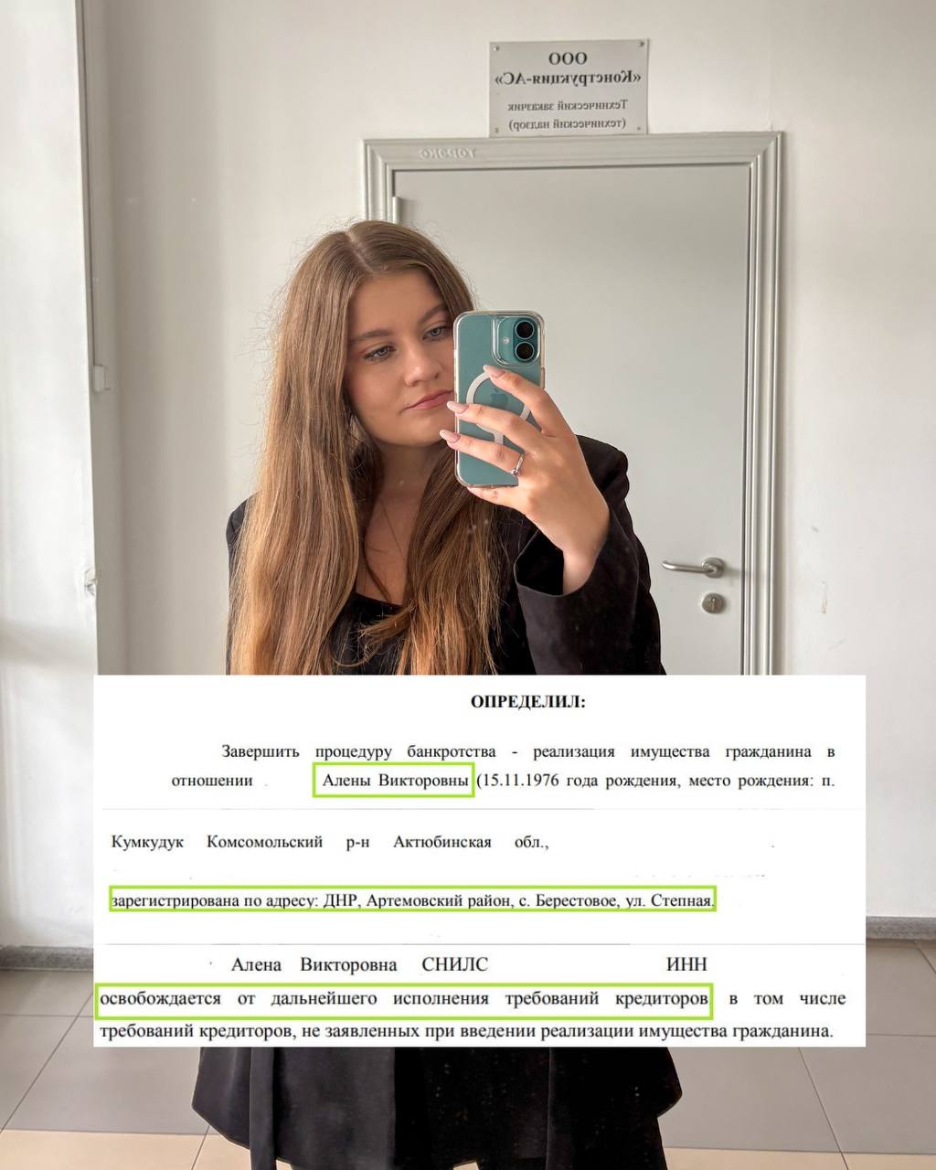 🗓19 августа суд завершил процедуру полным списанием долгов. Алена освободилась от долговой нагрузки и может двигаться дальше! Номер дела А85-1937/2024.