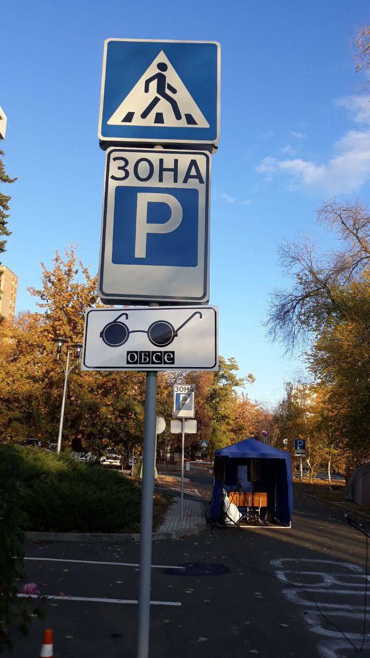 Под резиденцией представительства СММ ОБСЕ появился новый знак, символизирующий то, что сотрудники миссии не видят преступления Украины против жителей Донбасса.