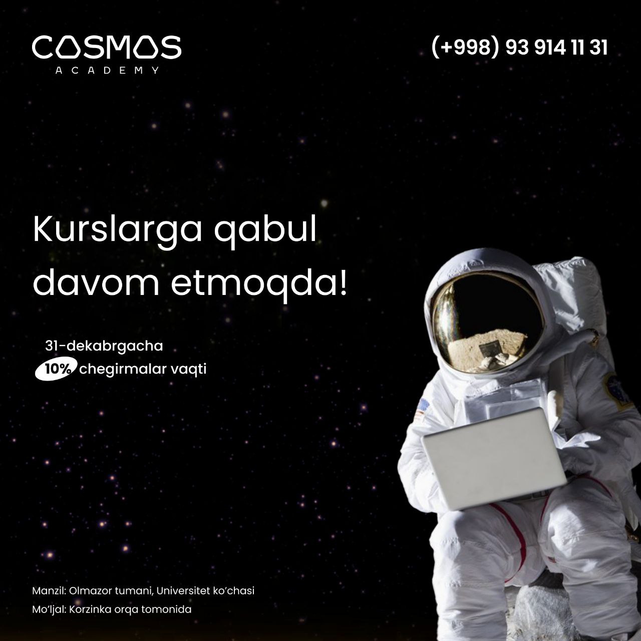 ββπ₯ Yangi yilni yangi kasbni o'rganib qarshi oling! Hozirda talab ortayotgan dasturlash sohalarini birini o'rganib, yaxshi dasturchi bo'lishni istaysizmi? Unda Cosmos akademiyasiga marhamat! Ushbu akademiyada siz tajribali mentorlar qo'l ostida o'zingizβ¦
