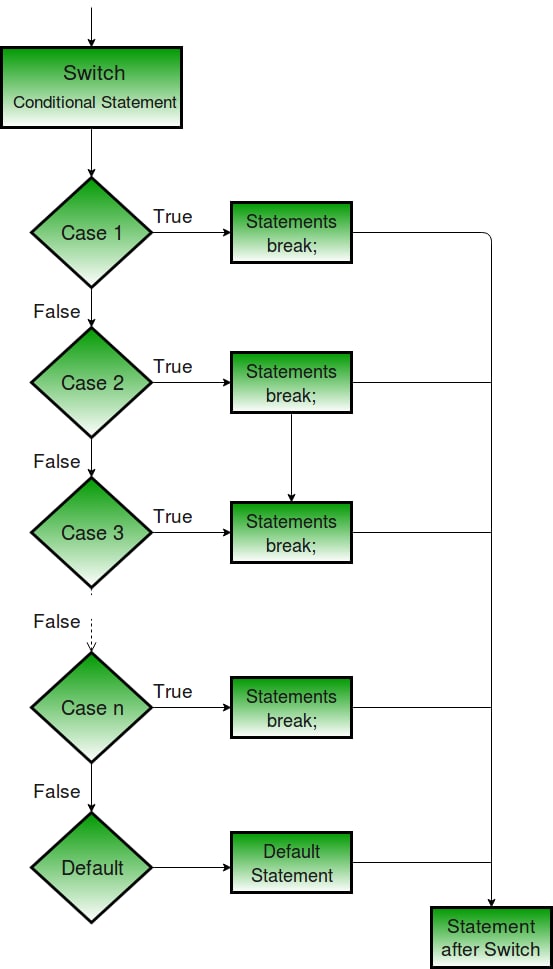 Quyida switch case tanlash operatorining blok sxemasi keltirib o'tilgan...