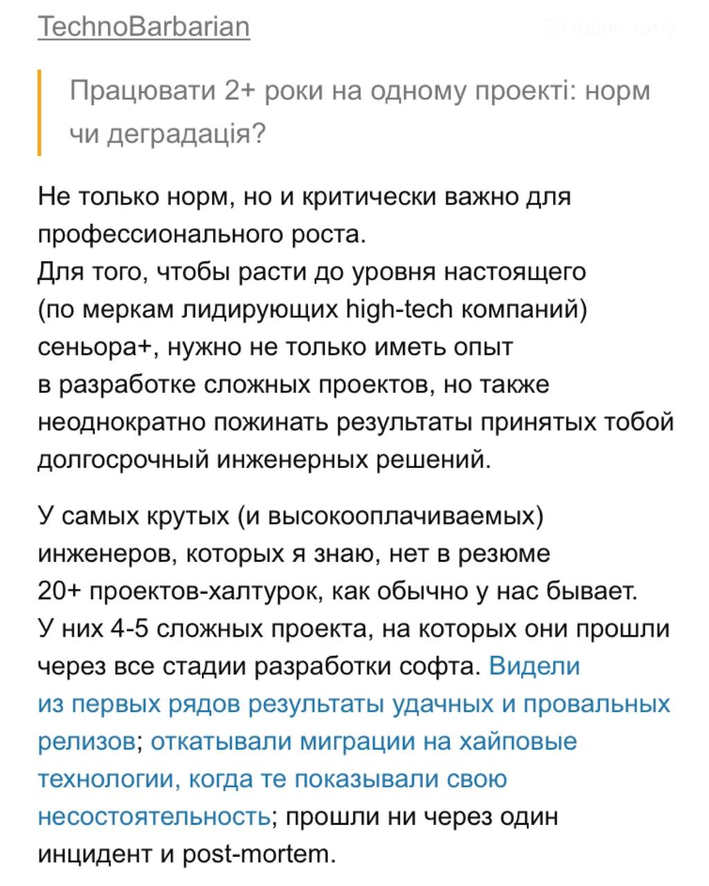 Працювати 2+ роки на одному проекті: норм чи деградація?: https://dou.ua/goto/tWWm