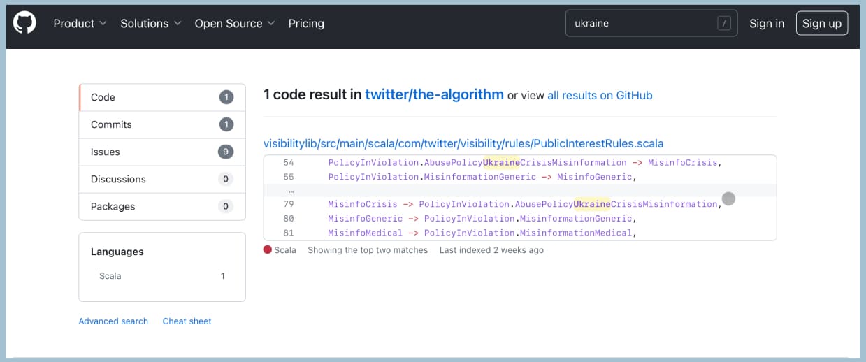 😕🇺🇦 Згадка про Україну у Twitter може викликати пониженя в переглядах — оприлюднили вихідний код