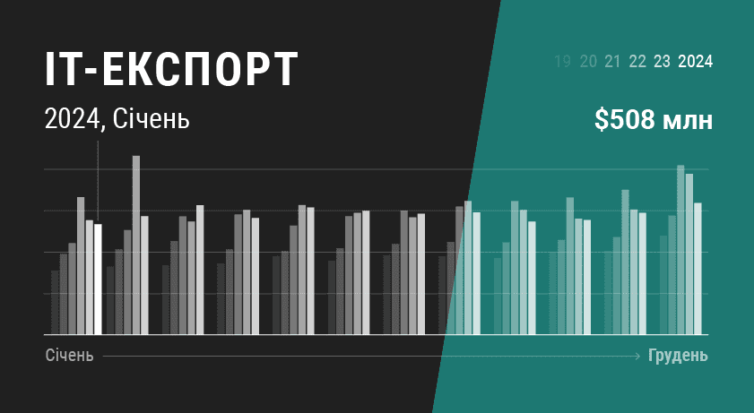 У січні обсяг ІТ-експорту з України становив $508 млн — це на 17% менше, ніж у грудні 2023 року.