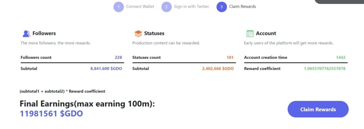 • Клейм токенов $GDO