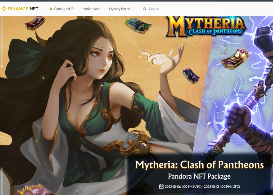 Та самая Mytheria которая выходила на Redkite/Gamefi/KAIstarter, которая является инкуб проектом Kardiachain анонсировала продажу своих боксов на Binance NFT.