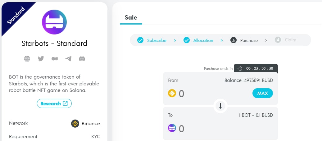 Система сейлов как у Impossible (будет 2 пула, стандарт и безлимит). До начала сейла надо будет успеть пройти KYC верификацию (ссылки еще нет).