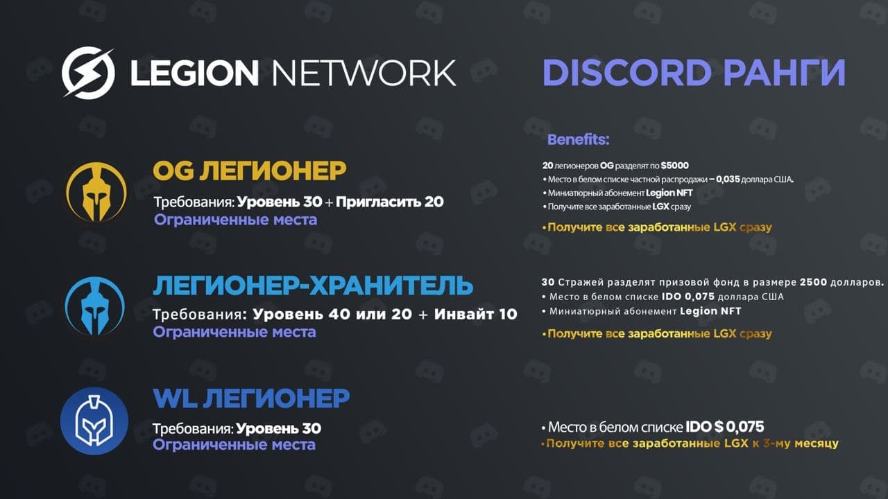 • Legion Network, новые условия для клейма наград, нужен актив в ДС
