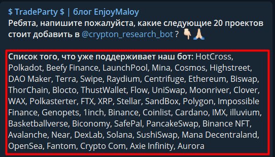 @crypton_research_bot - объективно один из лучших ботов в ТГ, который должен быть у каждого уважающего себя криптана, т.к экономит огромное количество времени на ресерч, мониторинг новостей из твиттера, дискорда и всех медиа.