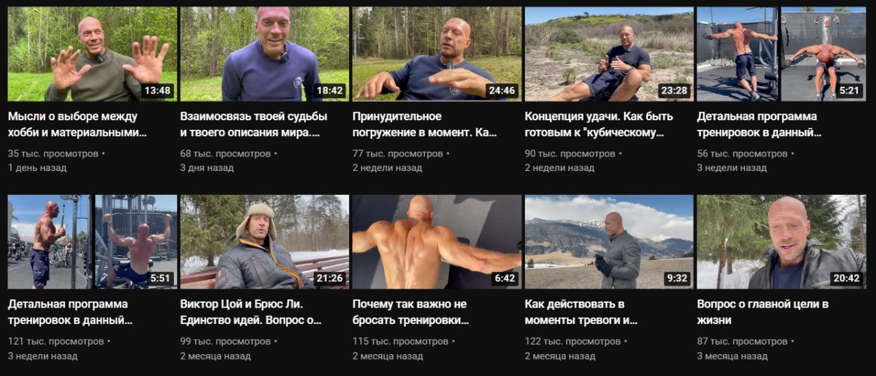 ▪️Денис Семенихин - это прям очень топовый мужик, которому сейчас 50+ лет, находится в крутейшей физической форме, ведет ЗОЖ, наполняет свою жизнь кучей всяких активностей по типу скейта, сноубордов, заездов по велотрассам в Калифорнии и делится своими философскими мыслями по поводу жизни, ее смысла и основных моментов. Есть контент по тренировкам, по питанию и по философским АУФ мыслям. Смотрю каждый видос, частенько пересматриваю некоторые из предыдущих. Очень много их его мыслей схожи с моими, топ-1 рекомендация.