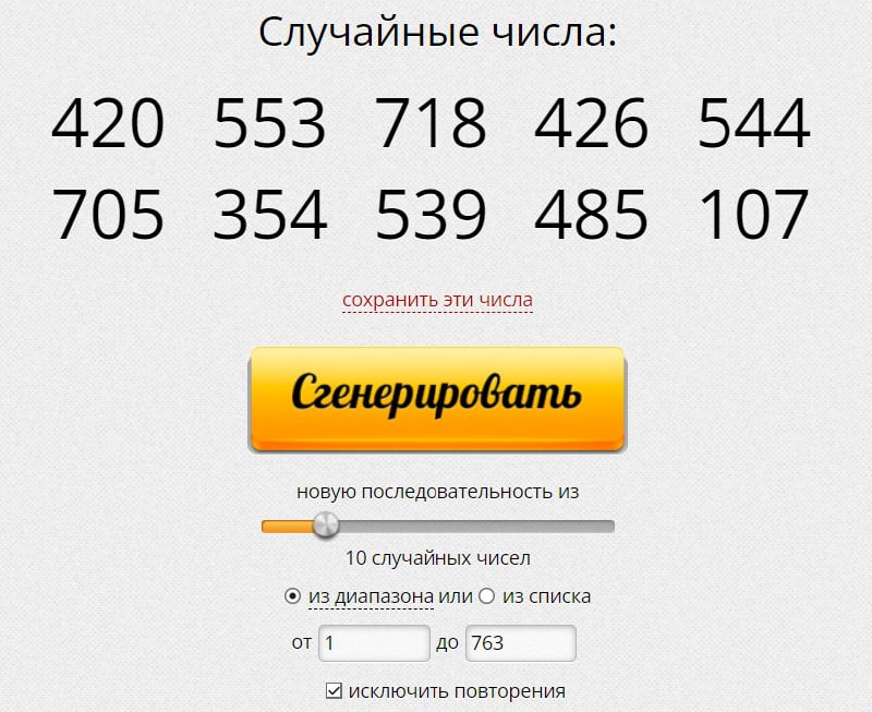 Всего на момент подведения итогов конкурса мы получили 763 заявки (гугл-формы). Используя сервис Randstuff выбрали 10 чисел из 763, которые и будут нашими победителями: